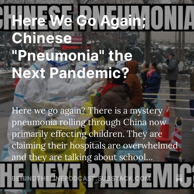 Here we go again? There is a mystery pneumonia rolling through China now primarily effecting children. They are claiming their hospitals are overwhelmed and they are talking about school closures. It’s interesting because this is similar to how Covid started, although obviously covid wasn’t just affecting kids. After reports started coming out of China for covid, it took it about three months to spread to other countries and the US. What’s also interesting is the fact that they table-topped nearly this exact scenario about in 2021. I did a podcast at the time that this was going to be the next pandemic. Covid was also table-topped just prior to it being discovered. The tabletop exercise involving this new scenario involved a strain of monkey pox that infected primarily children and had an extremely high mortality rate.