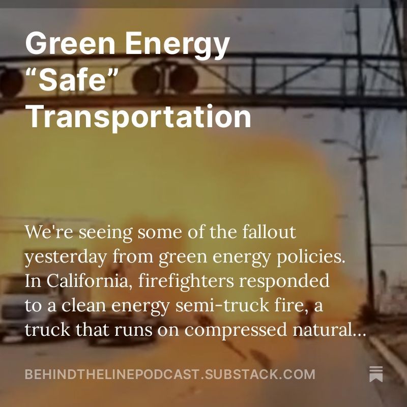 We’re seeing some of the fallout yesterday from green energy policies. In California, firefighters responded to a clean energy semi-truck fire, a truck that runs on compressed natural gas, which is funny because they are banning natural gas in new residential and commercial construction. They’re also trying to make people who have it already switch to all electric. Apparently its ok in cars and trucks but not structural applications. Anyhow, the first fire crew arrived and shortly after the tank exploded (see video).